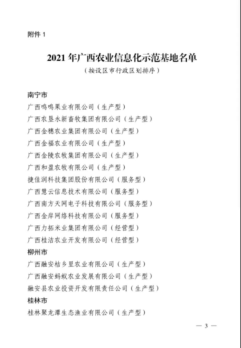 廣西安欣牧業(yè)成功入選2021年廣西農(nóng)業(yè)信息化示范基地名單